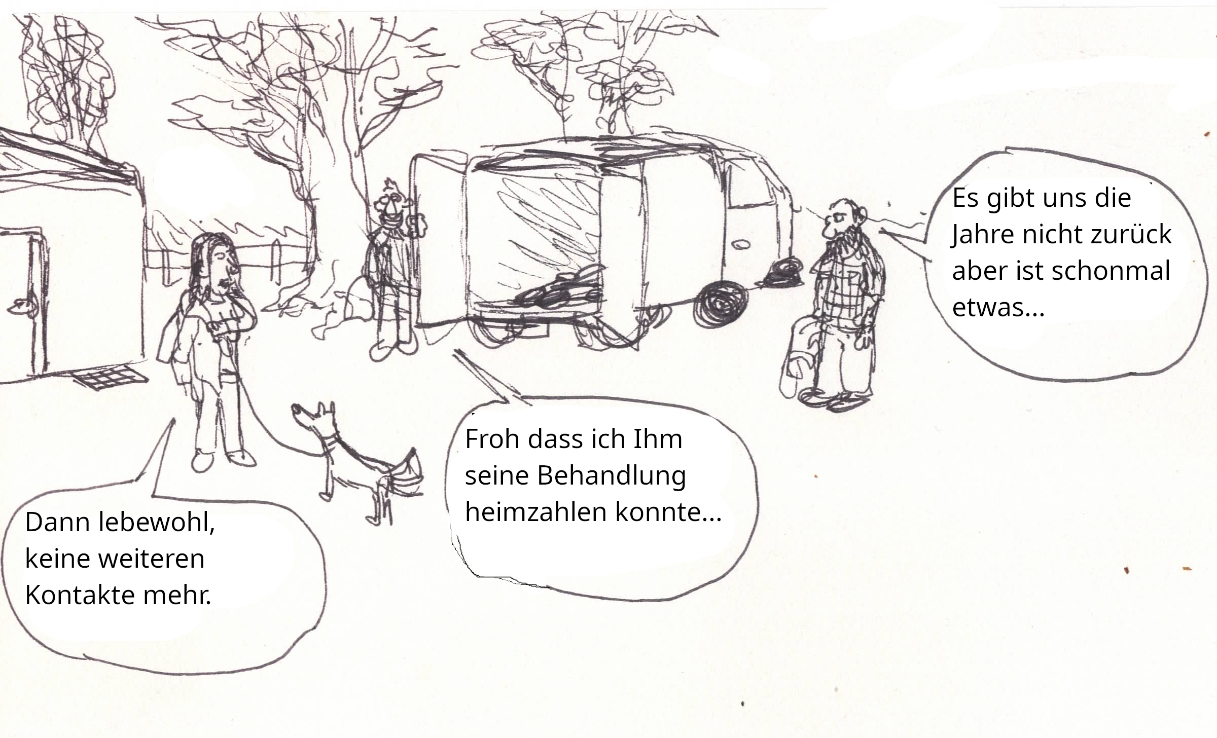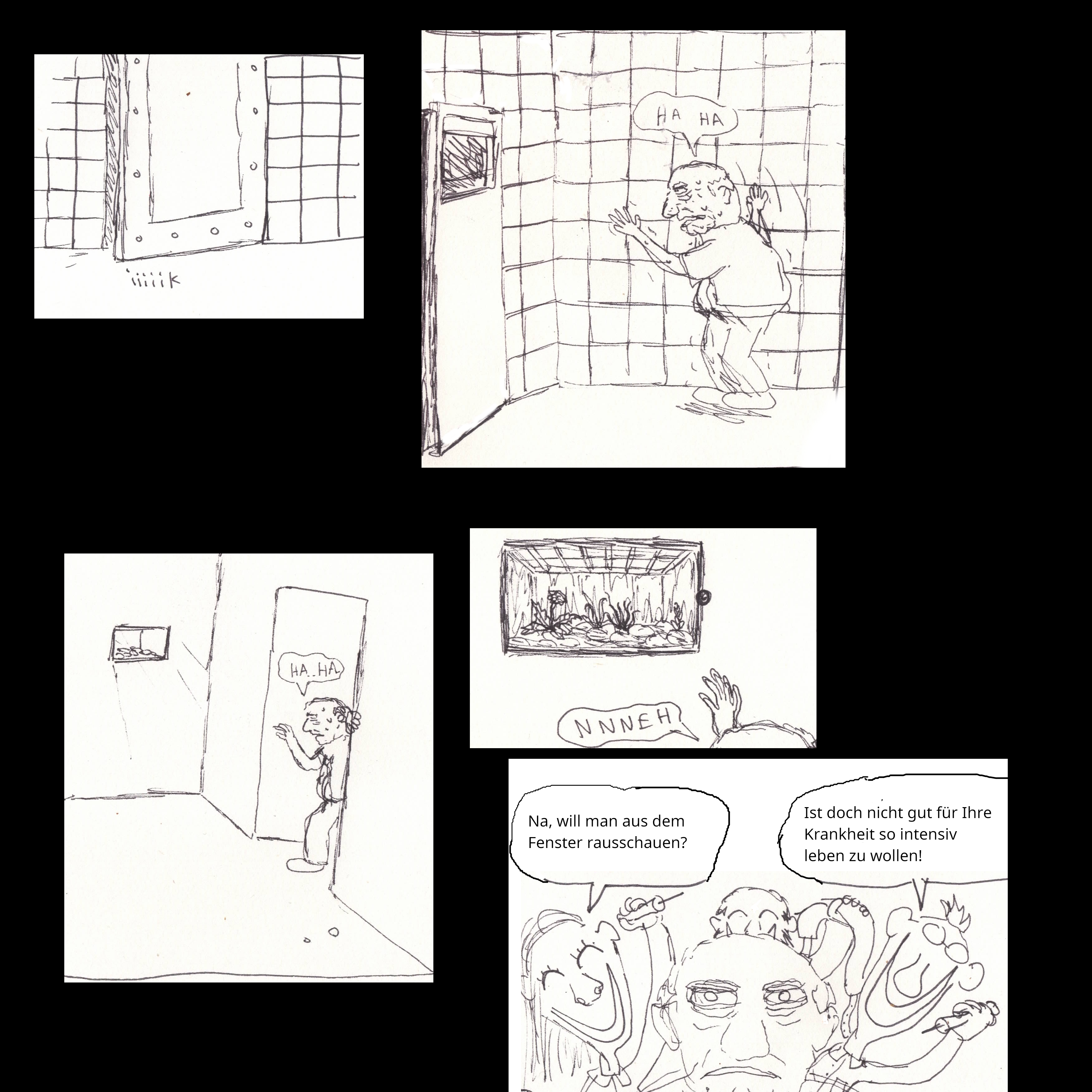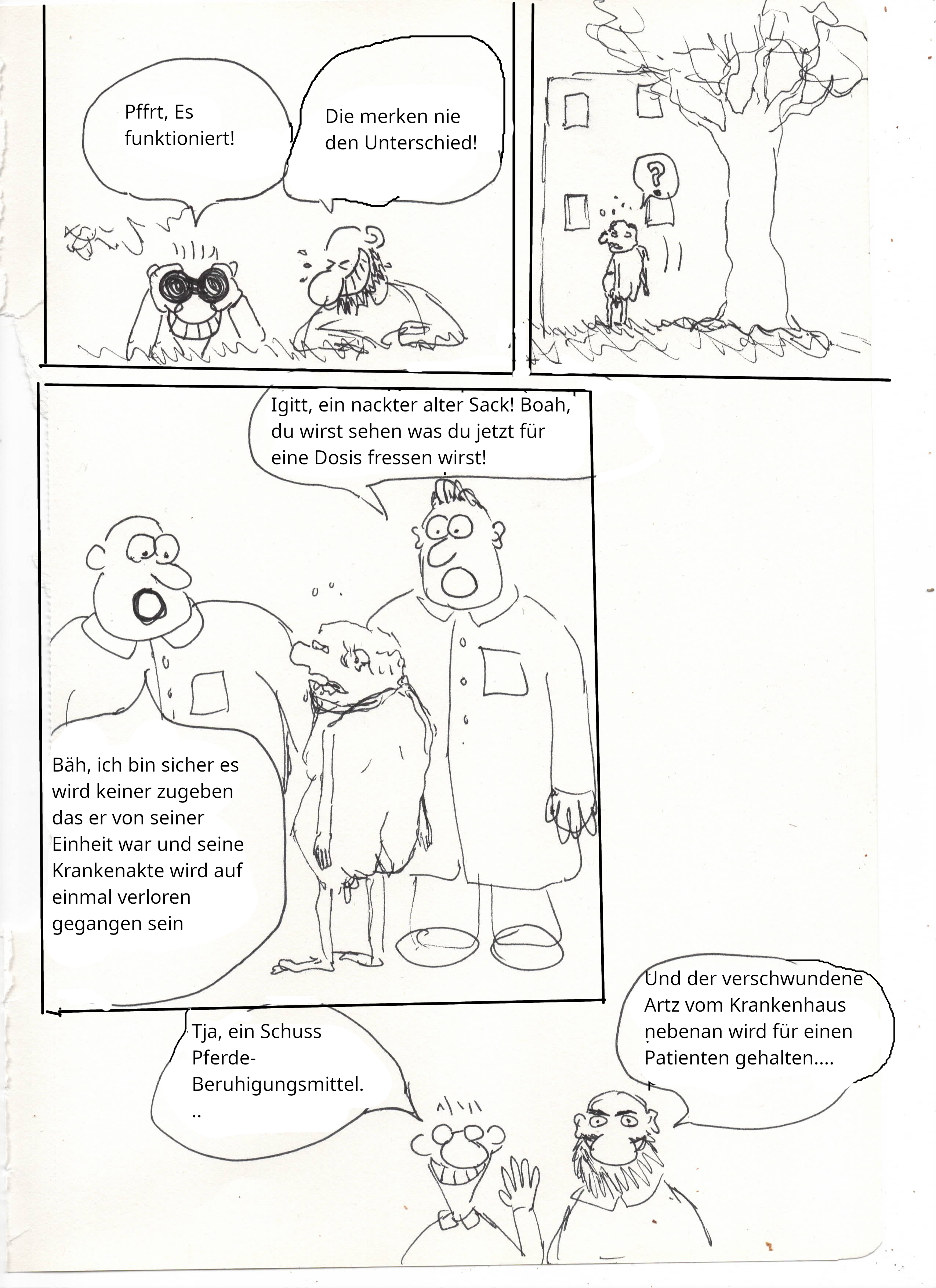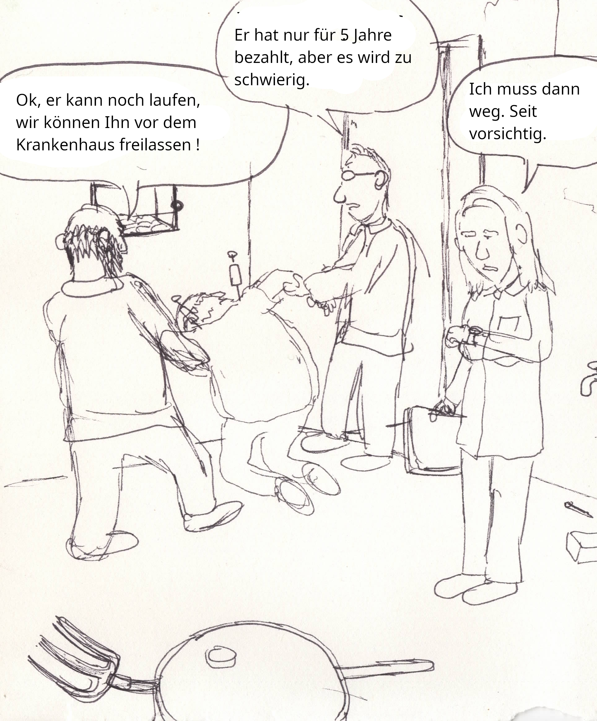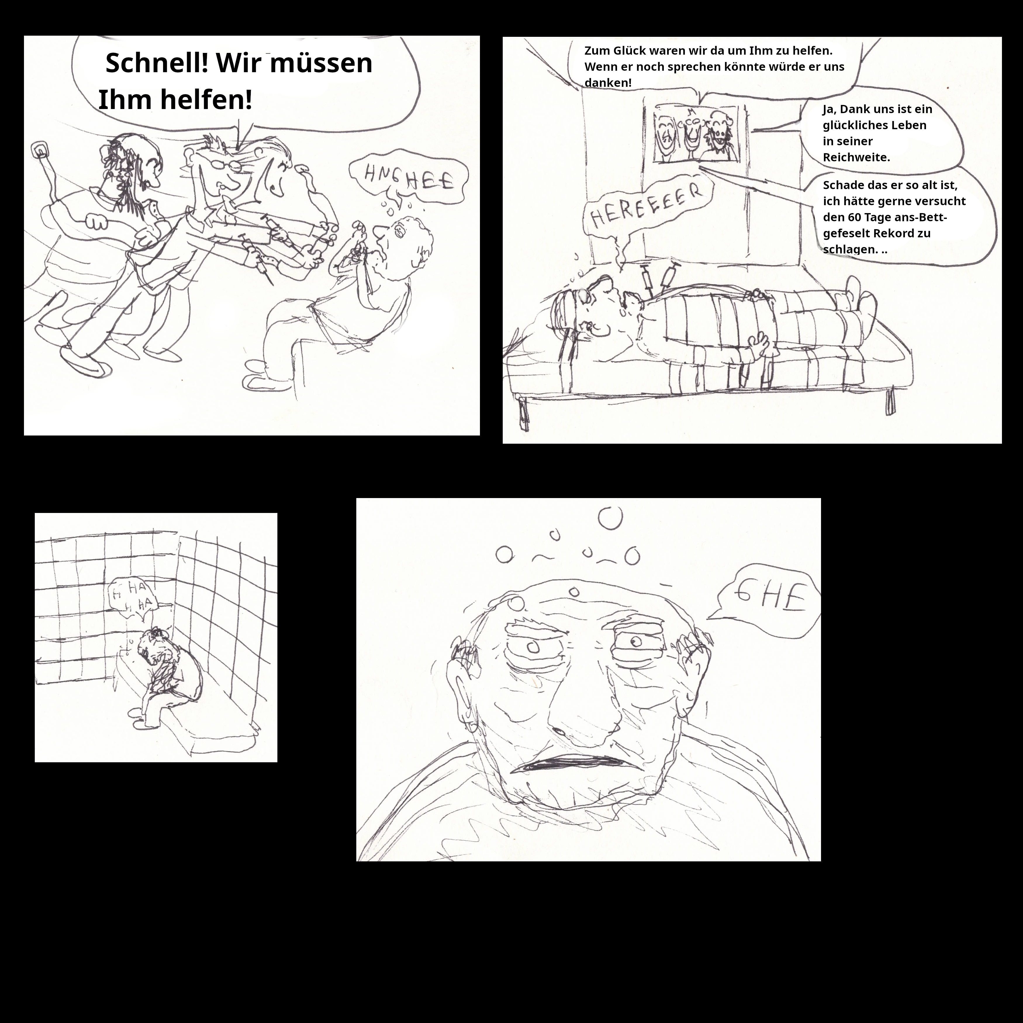 Eine etwas verdrehte geschichte, die ehemaligen Patienten die den Menschendresseur kidnappen und jahrelang in einem Keller behandeln wie er es für Sie getan hat. Ist so einfacher und lustiger zu malen